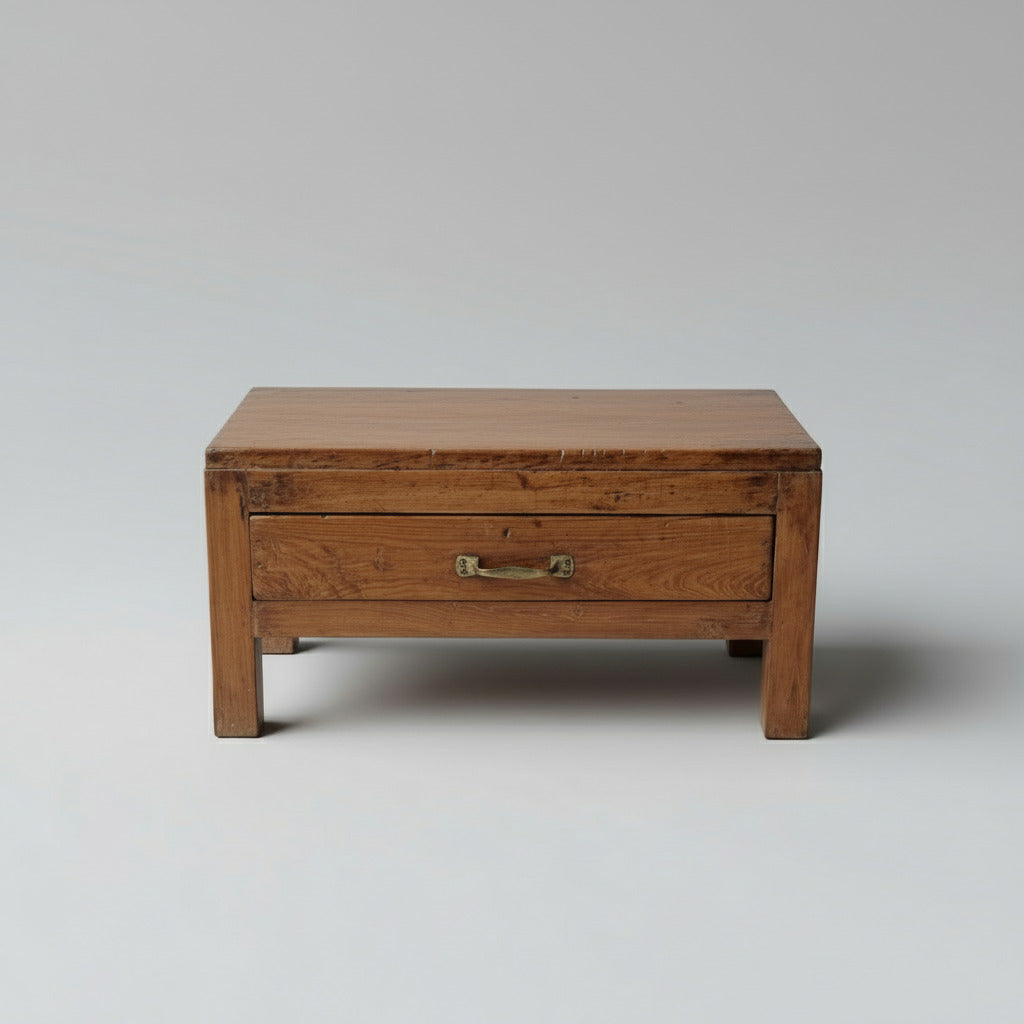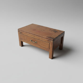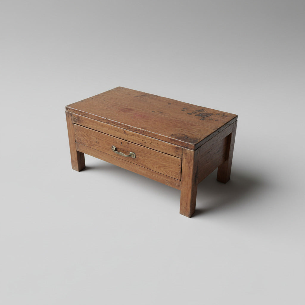 Hand fabricated from teak hardwood, decades of use have given this functional side table a lovely distressed surface finish and each new loving waxed polish has enhanced its unique patina.