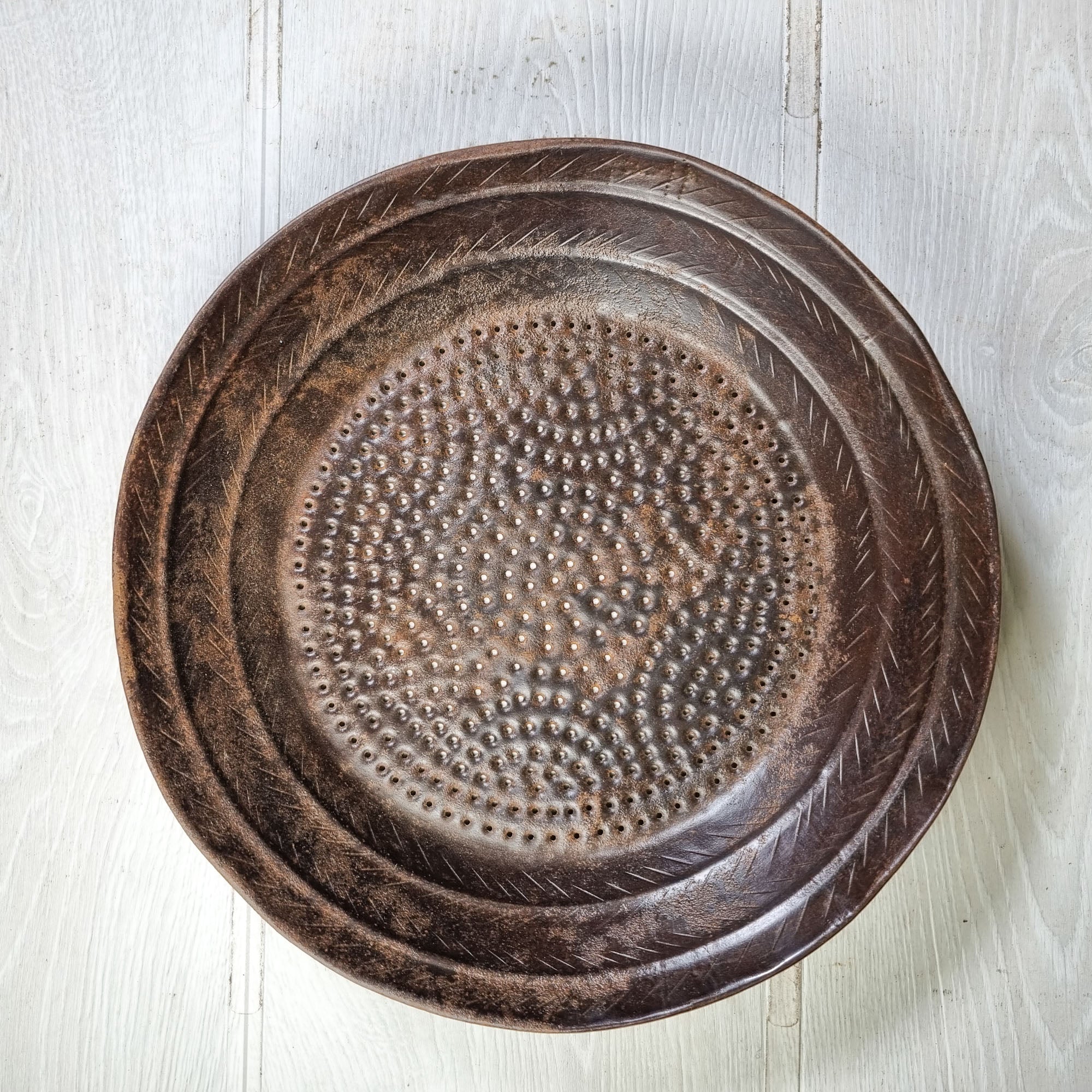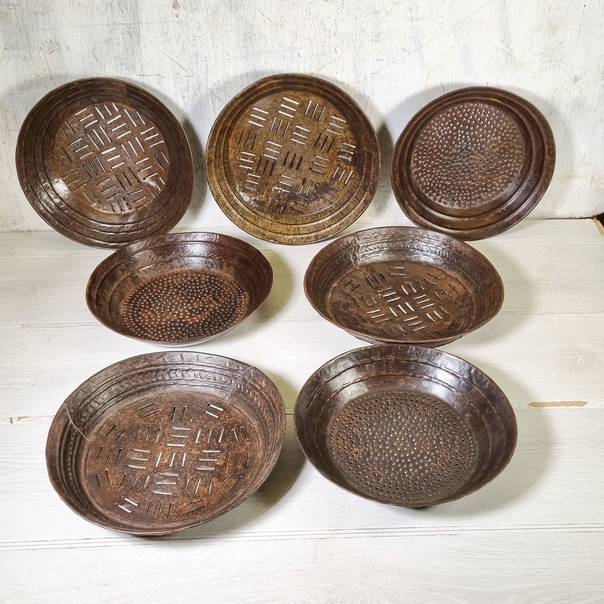 These original handmade authentic sieves each have their own character - small scratches and minor dings giving them each a uniqueness and a wonderful vintage feel. Sizes and the patterned design is unique with no 2 being the same.