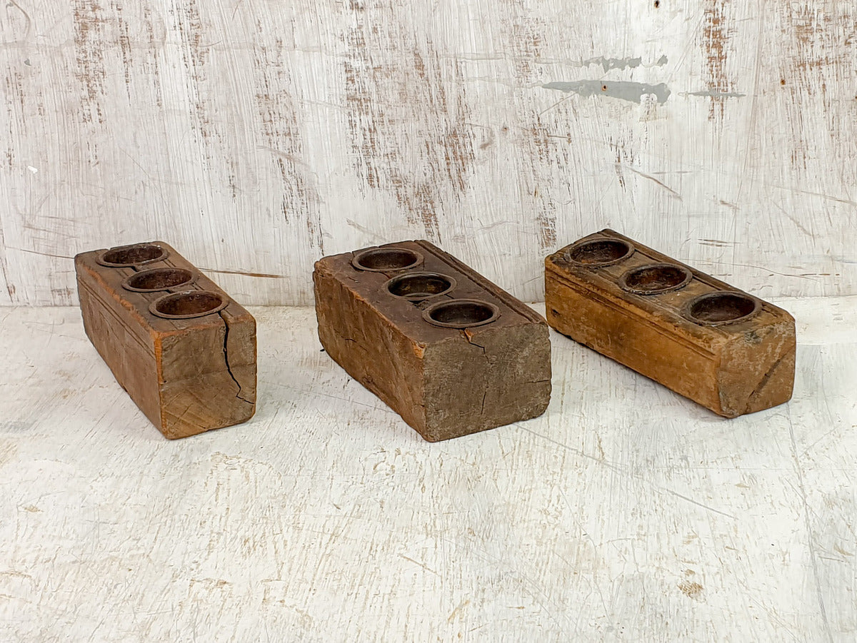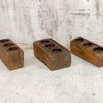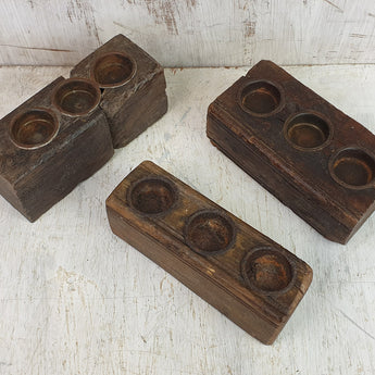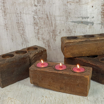 Each piece is unique. The old wood will show significant signs of wear, distressing, dents and loss of its original colour. There may also be historical splits, irregular edges to the wood, as well as old nails.We also have larger natural candleholders available.