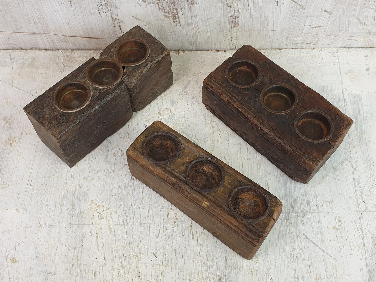 Reclaimed solid tropical hardwood rustic candle holder made from a chunky block of salvaged tropical hardwood. Perfect for scented tealights.The wood was salvaged from architectural window frames and door frames. The metal tealight holders also have a rustic finish.