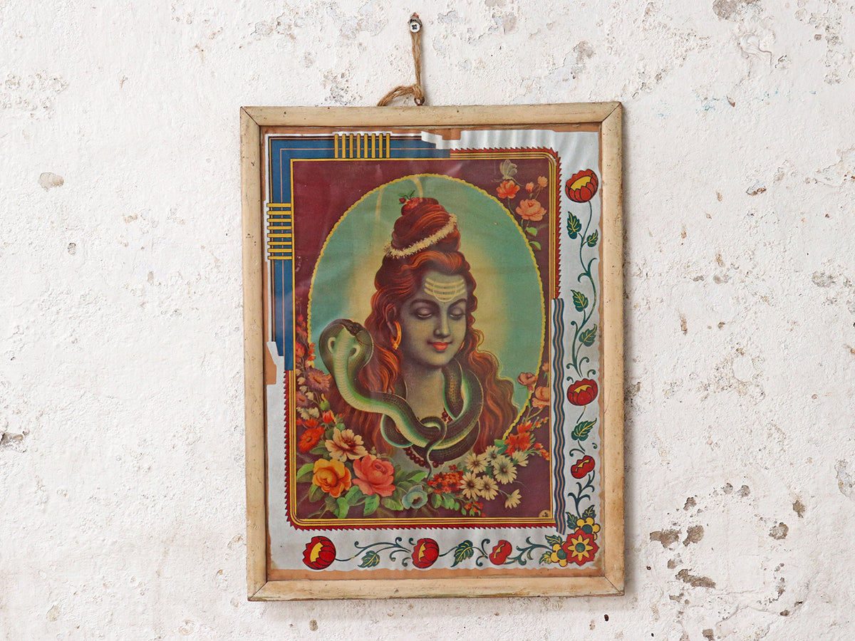 A stunning old Indian wall art print illustrating Shankar Bhagwan. The print would make a great decorative framed image for your gallery wall.