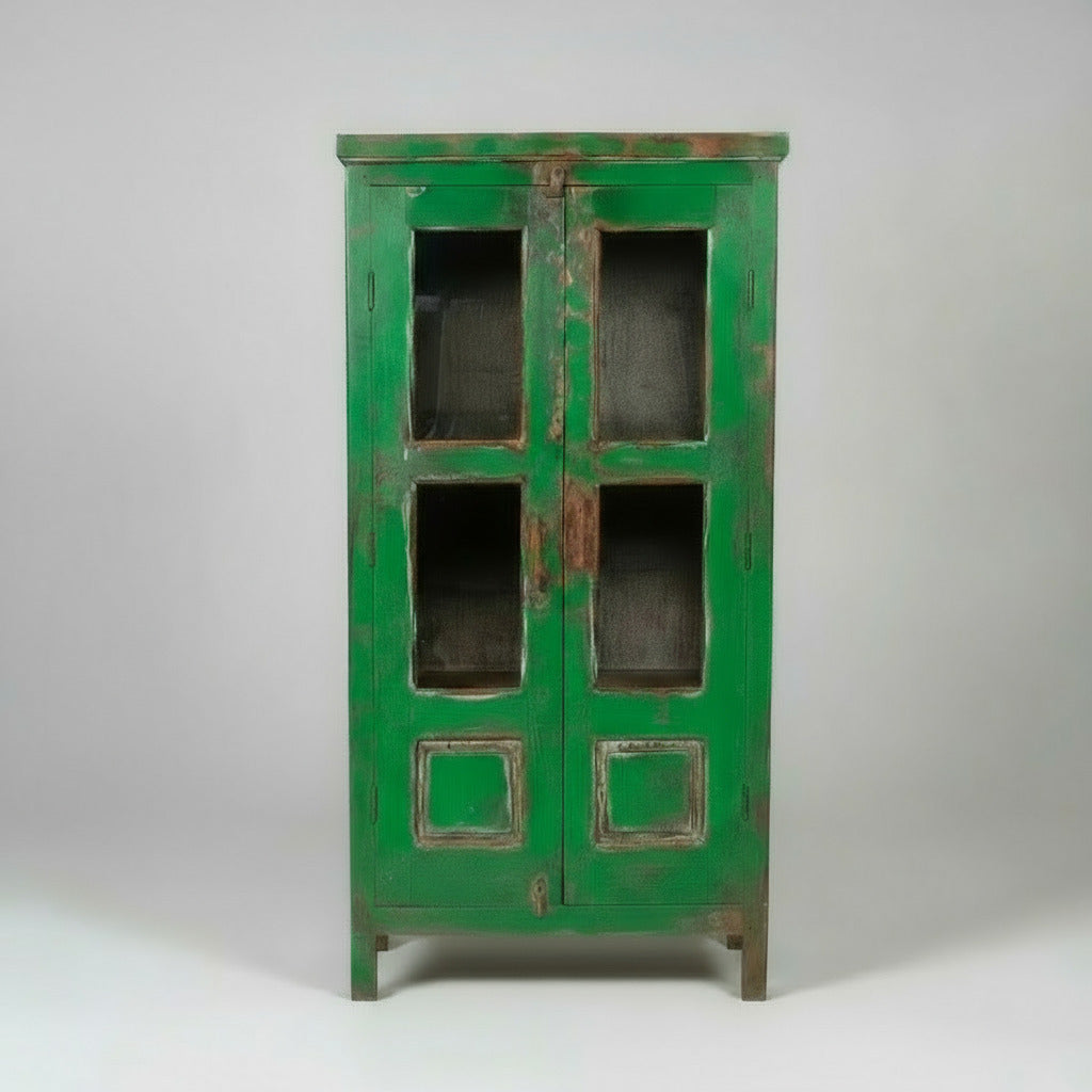 This striking green-painted vintage wardrobe has a fabulous painted finish. This original cupboard would make a perfect home storage piece due to its size and flexibility. Imagine the cupboard in your bedroom, kitchen or living room.