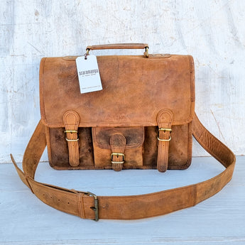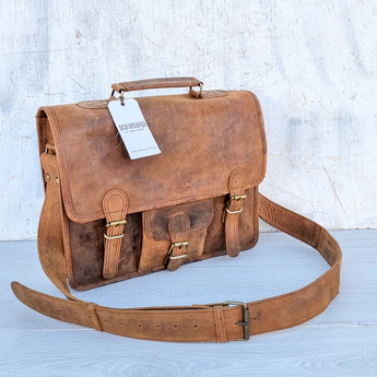 Leather Satchel with Pocket (15 inch) - SECONDS