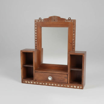 Its appeal comes from the eye-catch colouration and physical features which include - the ornate crown, central rack and small-sized compartment. These all make the shaving mirror a piece of visual art with a functional aspect.