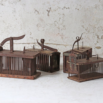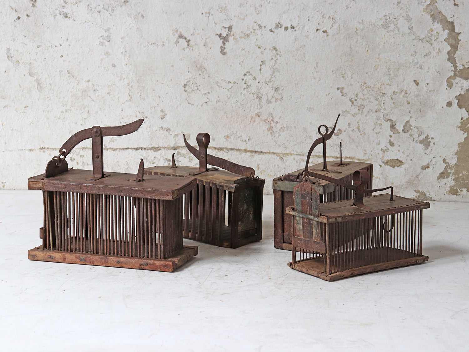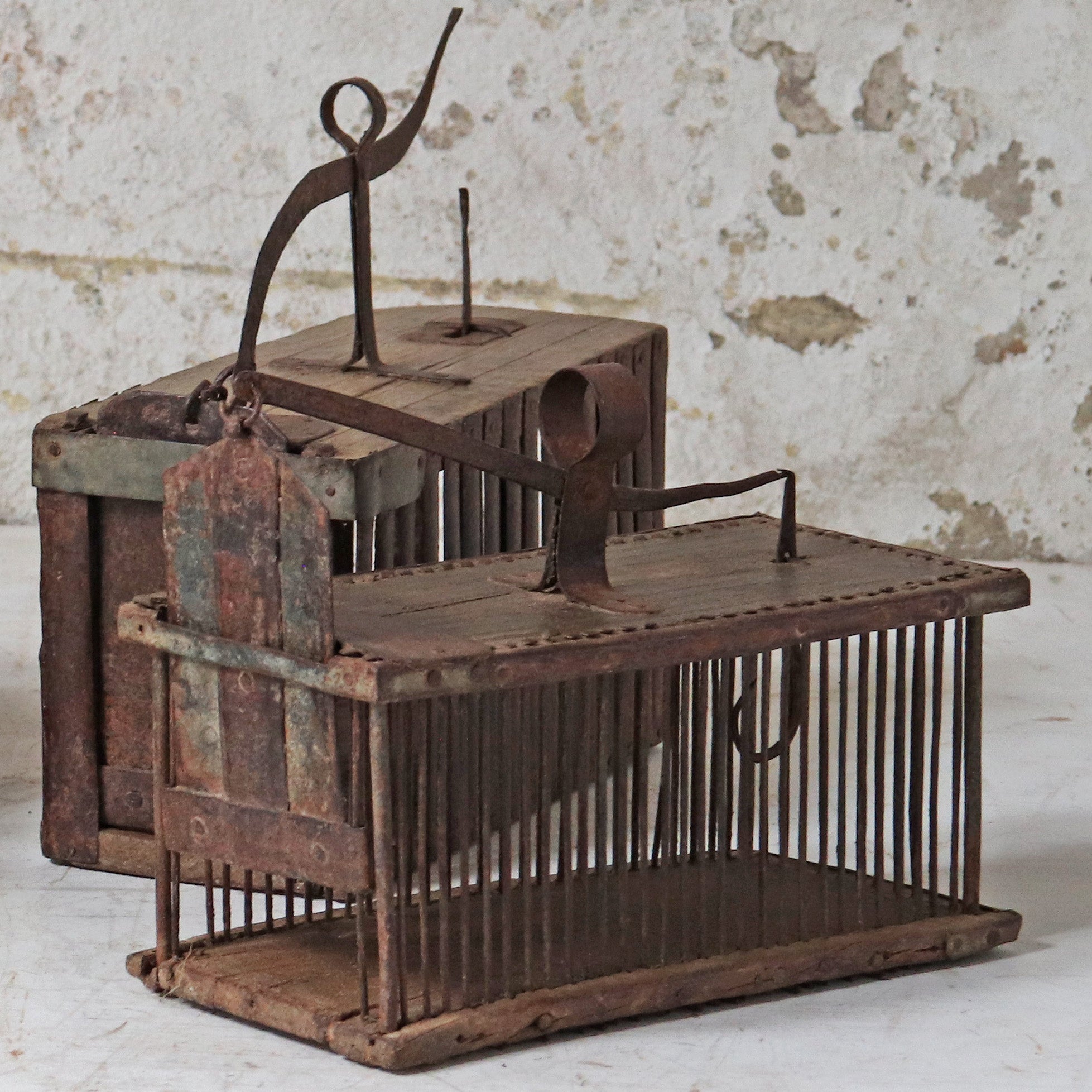 An original vintage mouse or rat catcher. An ingenious metal cage with a sliding door that is activated when the mouse touches the small tray filled with food.